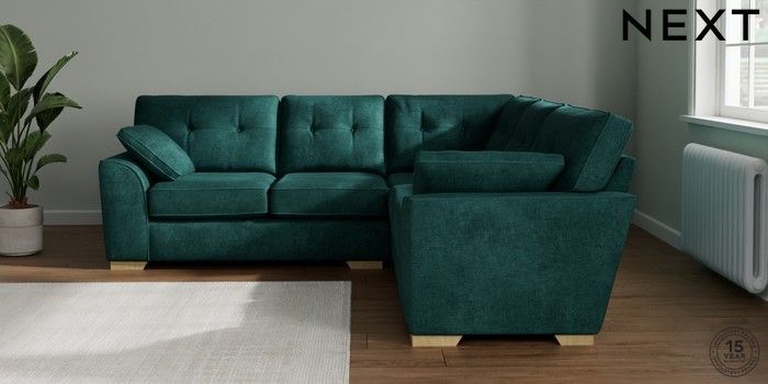 7.2.6 Buy Stamford Buttoned Back Medium Corner Sofa - Universal Plush Chenille Dark Teal Green Large Square Angle - Light from the Next UK online shop Click here to use our accessible website