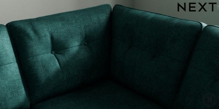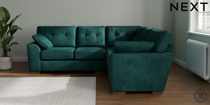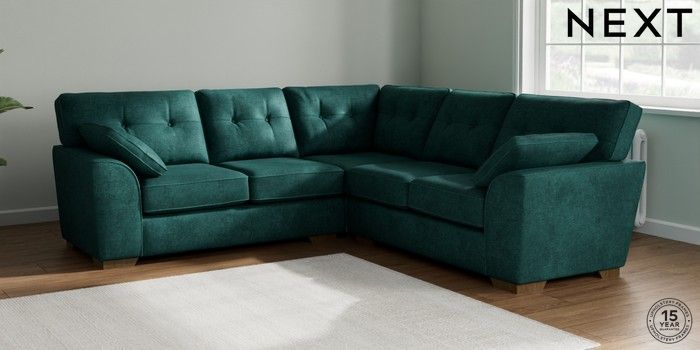 7.2.10 Buy Stamford Buttoned Back Medium Corner Sofa - Universal Plush Chenille Dark Teal Green Large Square Angle - Mid from the Next UK online shop Click here to use our accessible website