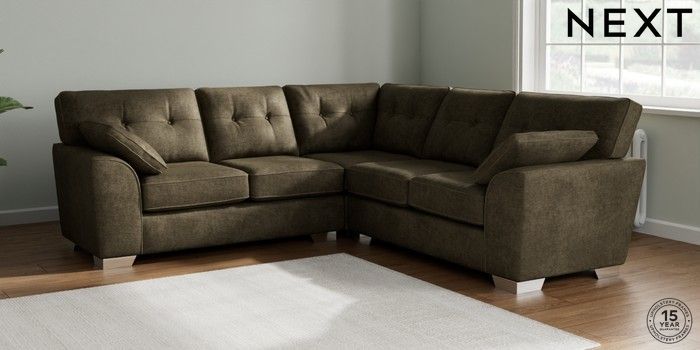 7.2.10 Buy Stamford Buttoned Back Medium Corner Sofa - Universal Plush Chenille Moss Green Large Square Angle - Chrome Metal from the Next UK online shop Click here to use our accessible website