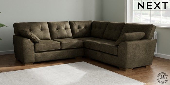 7.2.6 Buy Stamford Buttoned Back Medium Corner Sofa - Universal Plush Chenille Moss Green Large Square Angle - Mid from the Next UK online shop Click here to use our accessible website