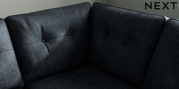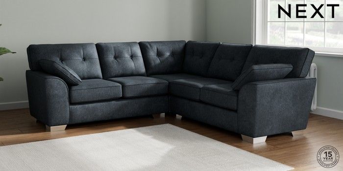 7.2.10 Buy Stamford Buttoned Back Medium Corner Sofa - Universal Plush Chenille Slate Blue Large Square Angle - Chrome Metal from the Next UK online shop Click here to use our accessible website