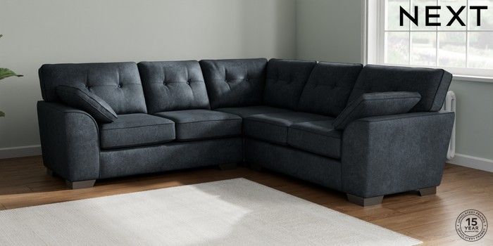 7.2.10 Buy Stamford Buttoned Back Medium Corner Sofa - Universal Plush Chenille Slate Blue Large Square Angle - Gunmetal from the Next UK online shop Click here to use our accessible website