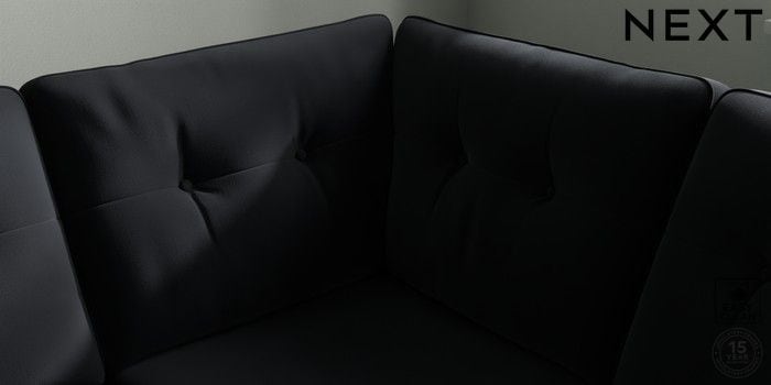 7.2.10 Buy Stamford Buttoned Back Medium Corner Sofa - Universal Plush Velvet Easy Clean Charcoal Grey Large Square Angle - Dark from the Next UK online shop Click here to use our accessible website