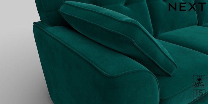 6.12.13 Buy Stamford Buttoned Back Medium Corner Sofa - Universal Plush Velvet Easy Clean Juniper Green Large Square Angle - Light from the Next UK online shop Click here to use our accessible website