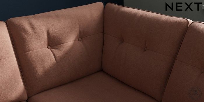 7.2.6 Buy Stamford Buttoned Back Medium Corner Sofa - Universal Relaxed Linen Look Light Rust Brown Large Square Angle - Brushed Brass from the Next UK online shop Click here to use our accessible website