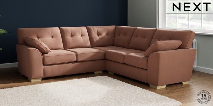 7.2.6 Buy Stamford Buttoned Back Medium Corner Sofa - Universal Relaxed Linen Look Light Rust Brown Large Square Angle - Light from the Next UK online shop Click here to use our accessible website