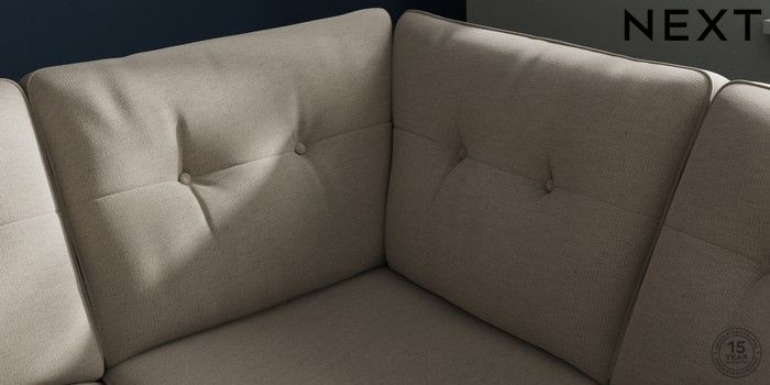 7.2.10 Buy Stamford Buttoned Back Medium Corner Sofa - Universal Ripple Chenille Light Natural Large Square Angle - Chrome Metal from the Next UK online shop Click here to use our accessible website