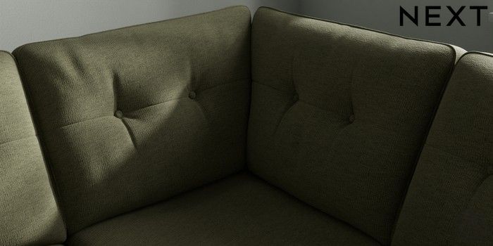 7.2.10 Buy Stamford Buttoned Back Medium Corner Sofa - Universal Ripple Chenille Mid Moss Green Large Square Angle - Brushed Brass from the Next UK online shop Click here to use our accessible website