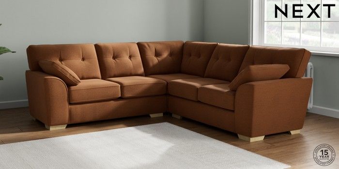 6.12.1 Buy Stamford Buttoned Back Medium Corner Sofa - Universal Ripple Chenille Mid Rust Brown Large Square Angle - Light from the Next UK online shop Click here to use our accessible website
