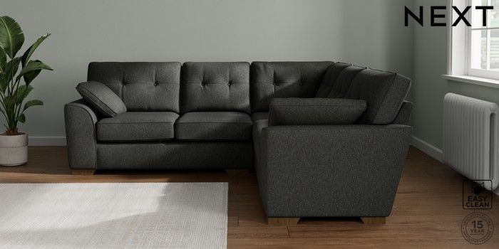 7.2.10 Buy Stamford Buttoned Back Medium Corner Sofa - Universal Tweedy Blend Easy Clean Charcoal Grey Large Square Angle - Mid from the Next UK online shop Click here to use our accessible website