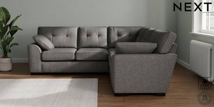 7.2.6 Buy Stamford Buttoned Back Medium Corner Sofa - Universal Tweedy Blend Easy Clean Dark Grey Large Square Angle - Dark from the Next UK online shop Click here to use our accessible website