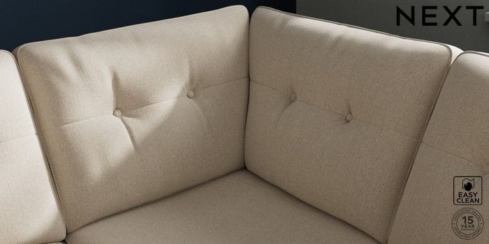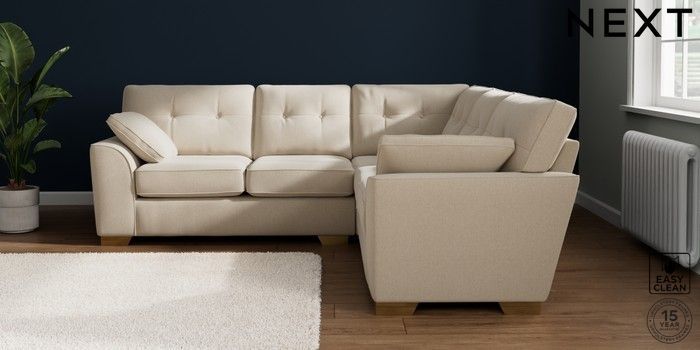 7.2.10 Buy Stamford Buttoned Back Medium Corner Sofa - Universal Tweedy Blend Easy Clean Oyster Large Square Angle - Brushed Brass from the Next UK online shop Click here to use our accessible website