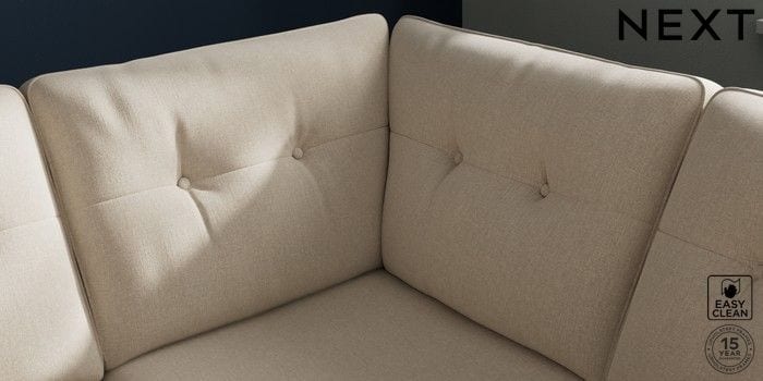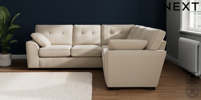 7.2.10 Buy Stamford Buttoned Back Medium Corner Sofa - Universal Tweedy Blend Easy Clean Oyster Large Square Angle - Dark from the Next UK online shop Click here to use our accessible website