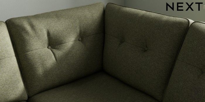 7.2.10 Buy Stamford Buttoned Back Medium Corner Sofa - Universal Tweedy Chenille Mid Moss Green Large Square Angle - Chrome Metal from the Next UK online shop Click here to use our accessible website