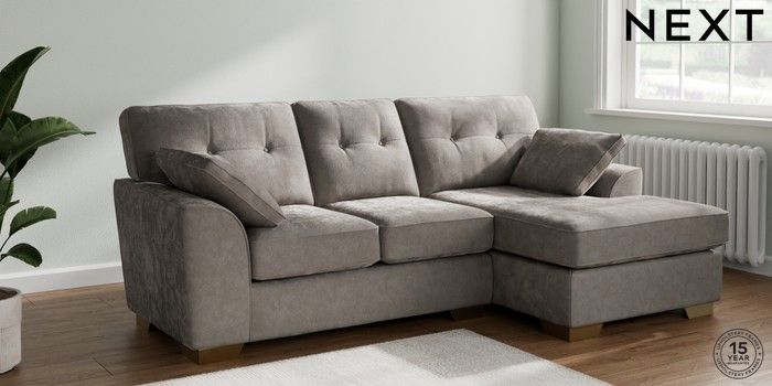 7.2.6 Buy Stamford Buttoned Back Small Sofa Chaise - Right Hand Distressed Velour French Grey Large Square Angle - Brushed Brass from the Next UK online shop Click here to use our accessible website