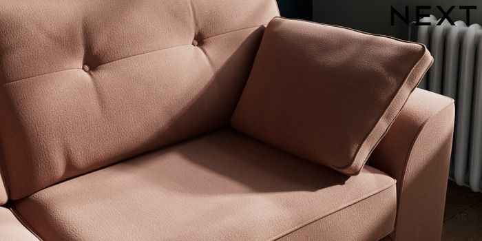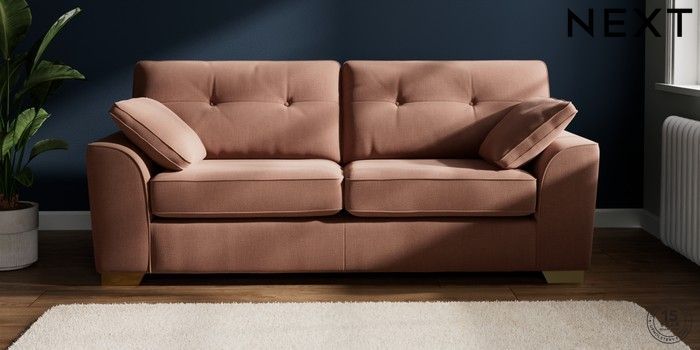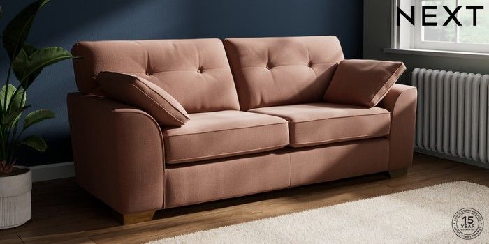 7.2.6 Buy Stamford Buttoned Back 3 Seater Sofa Relaxed Linen Look Light Rust Brown Large Square Angle - Brushed Brass from the Next UK online shop Click here to use our accessible website