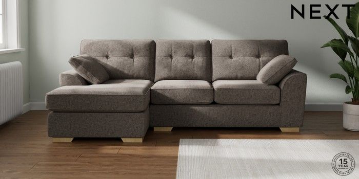 7.2.6 Buy Stamford Buttoned Back Medium Sofa Chaise - Left Hand Chunky Chenille Mink Brown Large Square Angle - Light from the Next UK online shop Click here to use our accessible website