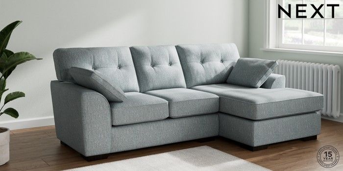 7.2.6 Buy Stamford Buttoned Back Small Sofa Chaise - Right Hand Chunky Weave Mid Blue Large Square Angle - Dark from the Next UK online shop Click here to use our accessible website
