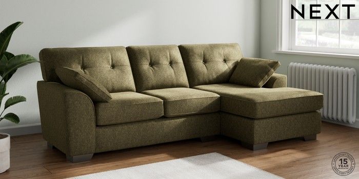 7.2.6 Buy Stamford Buttoned Back Medium Sofa Chaise - Right Hand Cotswold Chenille Dark Green Large Square Angle - Gunmetal from the Next UK online shop Click here to use our accessible website
