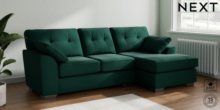 7.2.6 Buy Stamford Buttoned Back Medium Sofa Chaise - Right Hand Plush Velvet Easy Clean Bottle Green Large Square Angle - Gunmetal from the Next UK online shop Click here to use our accessible website