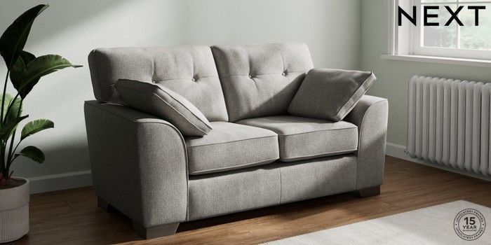 7.2.10 Buy Stamford Buttoned Back 2 Seater Small Sofa Tweedy Chenille Mid Grey Large Square Angle - Gunmetal from the Next UK online shop Click here to use our accessible website