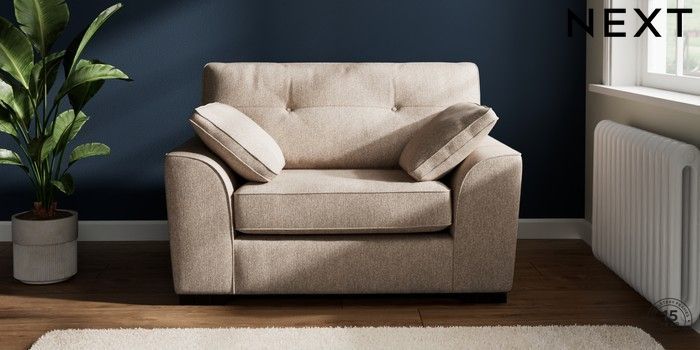 7.2.6 Buy Stamford Buttoned Back Snuggle Tweedy Chenille Mid Natural Large Square Angle - Dark from the Next UK online shop Click here to use our accessible website