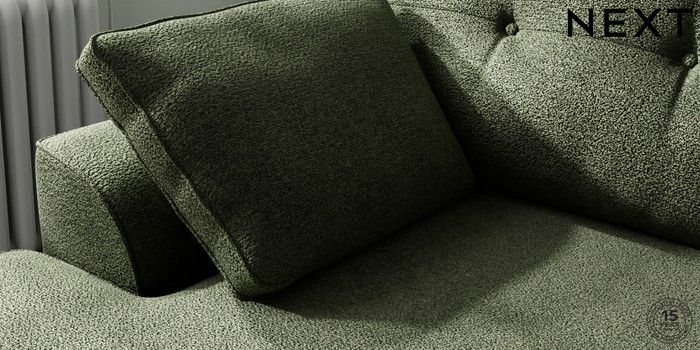 7.2.10 Buy Stamford Buttoned Back Medium Sofa Chaise - Left Hand Boucle Chenille Dark Moss Green Large Square Angle - Mid from the Next UK online shop Click here to use our accessible website