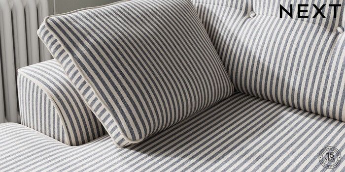 7.3.1 Buy Stamford Buttoned Back Medium Sofa Chaise - Left Hand Chenille Stripe Slate Blue Large Square Angle - Mid from the Next UK online shop Click here to use our accessible website