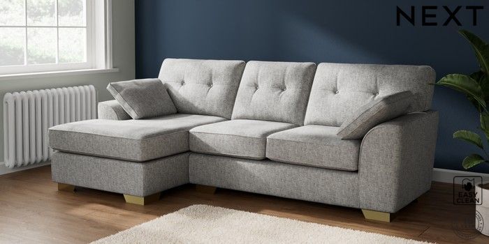 6.12.1 Buy Stamford Buttoned Back Medium Sofa Chaise - Left Hand Chunky Boucle Easy Clean Light Grey Large Square Angle - Brushed Brass from the Next UK online shop Click here to use our accessible website