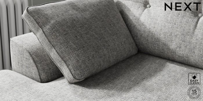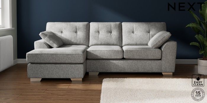 7.2.10 Buy Stamford Buttoned Back Medium Sofa Chaise - Left Hand Chunky Boucle Easy Clean Light Grey Large Square Angle - Chrome Metal from the Next UK online shop Click here to use our accessible website
