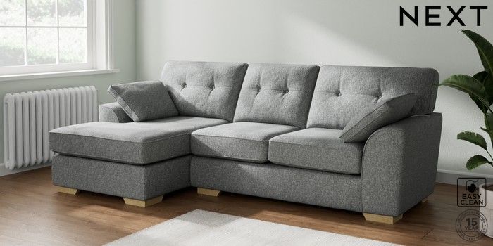 6.12.1 Buy Stamford Buttoned Back Medium Sofa Chaise - Left Hand Chunky Boucle Easy Clean Mid Grey Large Square Angle - Light from the Next UK online shop Click here to use our accessible website