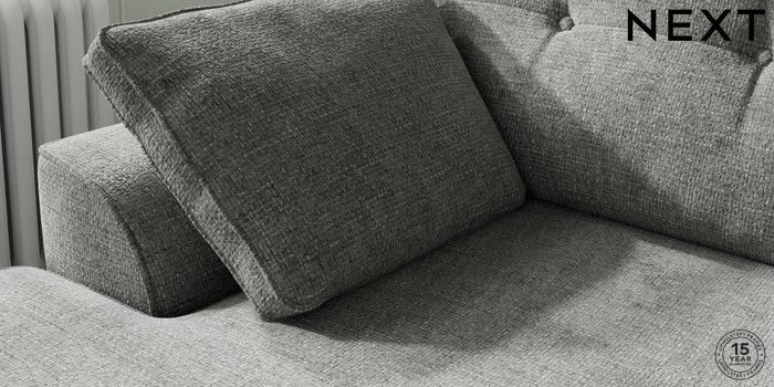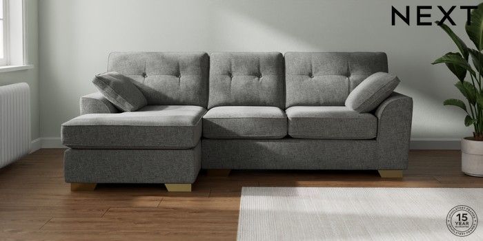 7.2.10 Buy Stamford Buttoned Back Medium Sofa Chaise - Left Hand Chunky Chenille Dark Grey Large Square Angle - Brushed Brass from the Next UK online shop Click here to use our accessible website