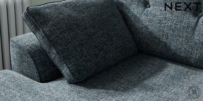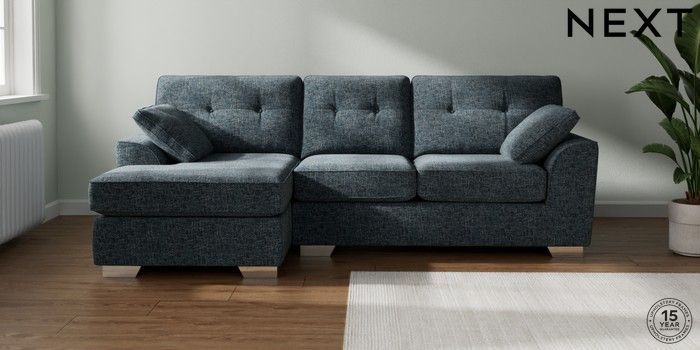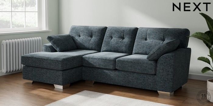 7.2.10 Buy Stamford Buttoned Back Medium Sofa Chaise - Left Hand Chunky Chenille Dark Navy Blue Large Square Angle - Chrome Metal from the Next UK online shop Click here to use our accessible website
