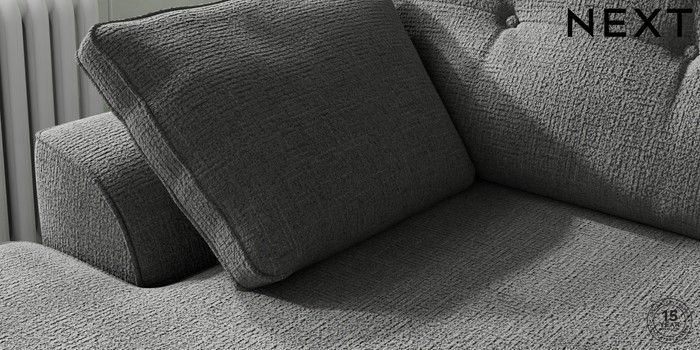 7.2.10 Buy Stamford Buttoned Back Medium Sofa Chaise - Left Hand Chunky Texture Dark Grey Large Square Angle - Chrome Metal from the Next UK online shop Click here to use our accessible website