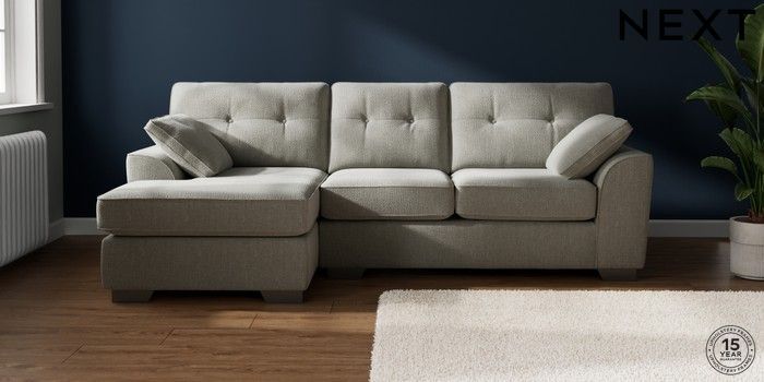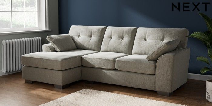 7.2.10 Buy Stamford Buttoned Back Medium Sofa Chaise - Left Hand Chunky Texture Dove Large Square Angle - Gunmetal from the Next UK online shop Click here to use our accessible website