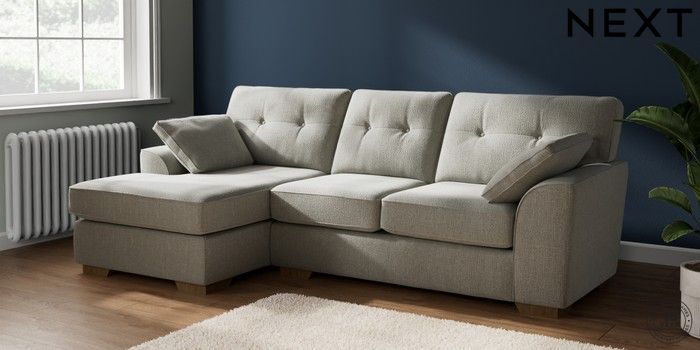 7.2.10 Buy Stamford Buttoned Back Medium Sofa Chaise - Left Hand Chunky Texture Dove Large Square Angle - Mid from the Next UK online shop Click here to use our accessible website