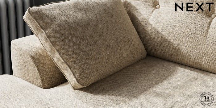 7.2.10 Buy Stamford Buttoned Back Medium Sofa Chaise - Left Hand Chunky Weave Cream Large Square Angle - Chrome Metal from the Next UK online shop Click here to use our accessible website