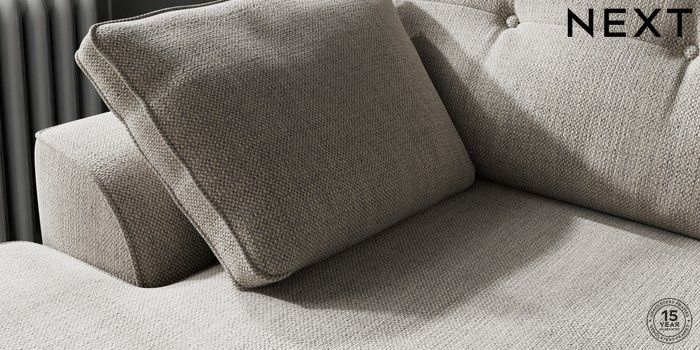 7.2.10 Buy Stamford Buttoned Back Medium Sofa Chaise - Left Hand Chunky Weave Dove Grey Large Square Angle - Brushed Brass from the Next UK online shop Click here to use our accessible website