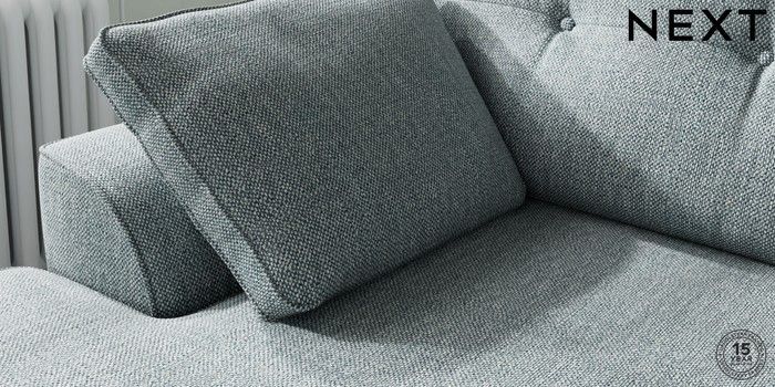 7.2.10 Buy Stamford Buttoned Back Medium Sofa Chaise - Left Hand Chunky Weave Mid Blue Large Square Angle - Gunmetal from the Next UK online shop Click here to use our accessible website