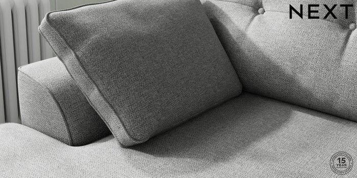 7.2.10 Buy Stamford Buttoned Back Medium Sofa Chaise - Left Hand Chunky Weave Mid Grey Large Square Angle - Brushed Brass from the Next UK online shop Click here to use our accessible website