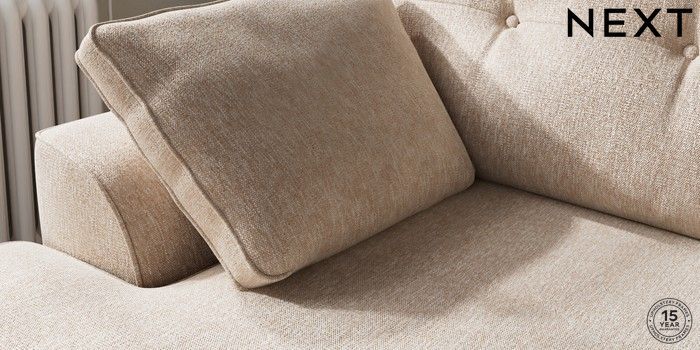 7.2.10 Buy Stamford Buttoned Back Medium Sofa Chaise - Left Hand Cotswold Chenille Light Natural Large Square Angle - Brushed Brass from the Next UK online shop Click here to use our accessible website
