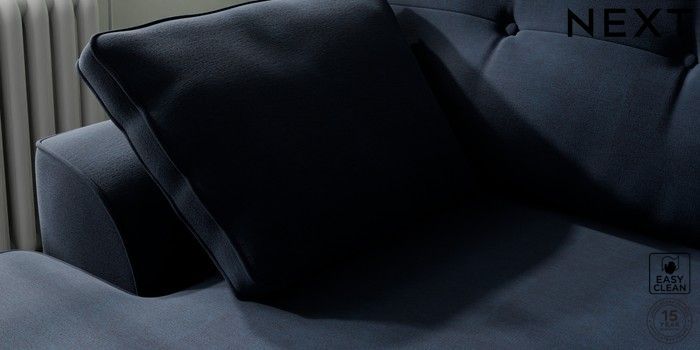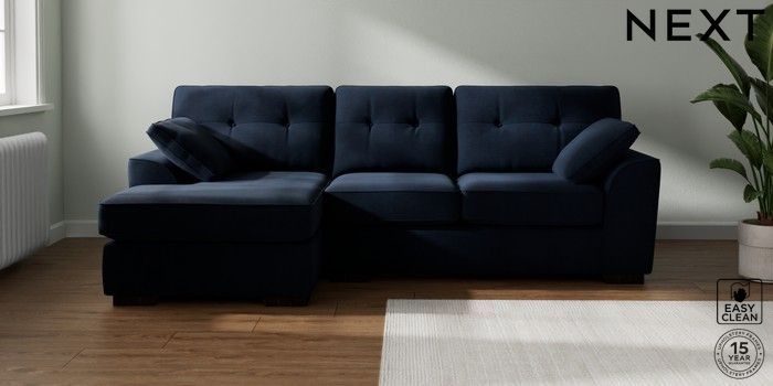 7.2.10 Buy Stamford Buttoned Back Medium Sofa Chaise - Left Hand Fine Chenille Easy Clean Dark Navy Blue Large Square Angle - Dark from the Next UK online shop Click here to use our accessible website