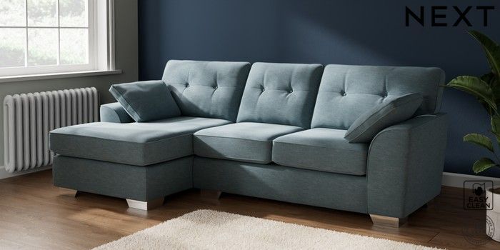 6.12.1 Buy Stamford Buttoned Back Medium Sofa Chaise - Left Hand Fine Chenille Easy Clean Mid Blue Large Square Angle - Chrome Metal from the Next UK online shop Click here to use our accessible website