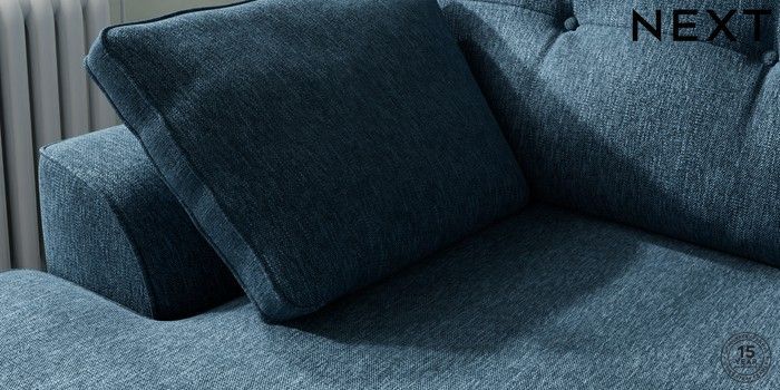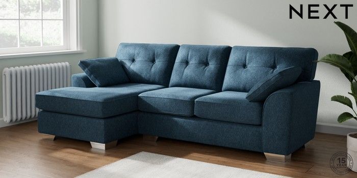 7.2.10 Buy Stamford Buttoned Back Medium Sofa Chaise - Left Hand Cotswold Chenille Dark Blue Large Square Angle - Chrome Metal from the Next UK online shop Click here to use our accessible website