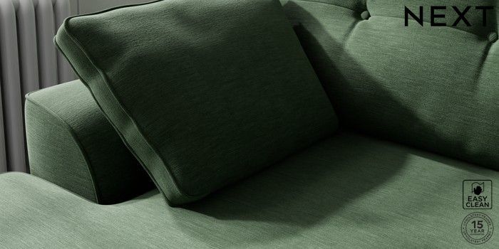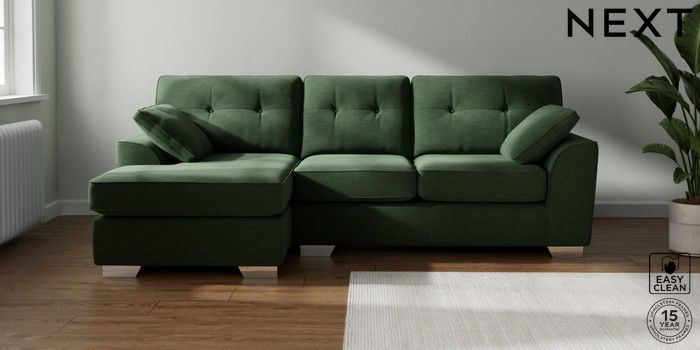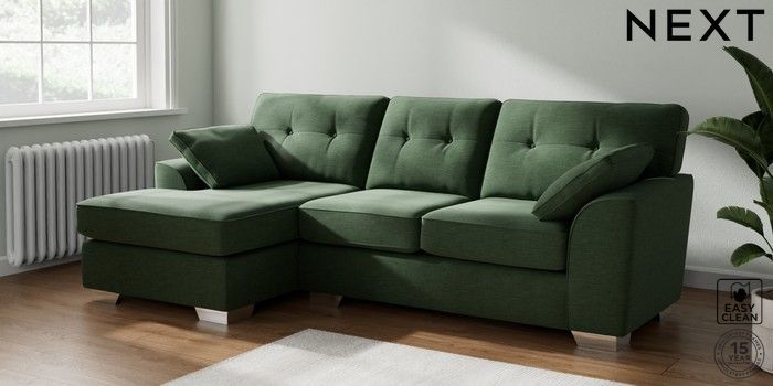 7.2.10 Buy Stamford Buttoned Back Medium Sofa Chaise - Left Hand Fine Chenille Easy Clean Mid Khaki Green Large Square Angle - Chrome Metal from the Next UK online shop Click here to use our accessible website