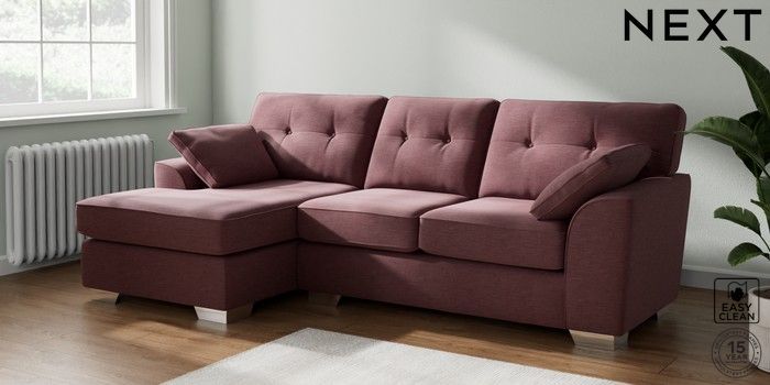 7.2.10 Buy Stamford Buttoned Back Medium Sofa Chaise - Left Hand Fine Chenille Easy Clean Mid Mulberry Purple Large Square Angle - Chrome Metal from the Next UK online shop Click here to use our accessible website