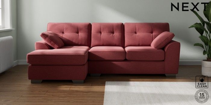7.2.10 Buy Stamford Buttoned Back Medium Sofa Chaise - Left Hand Fine Chenille Easy Clean Mid Pink Large Square Angle - Gunmetal from the Next UK online shop Click here to use our accessible website