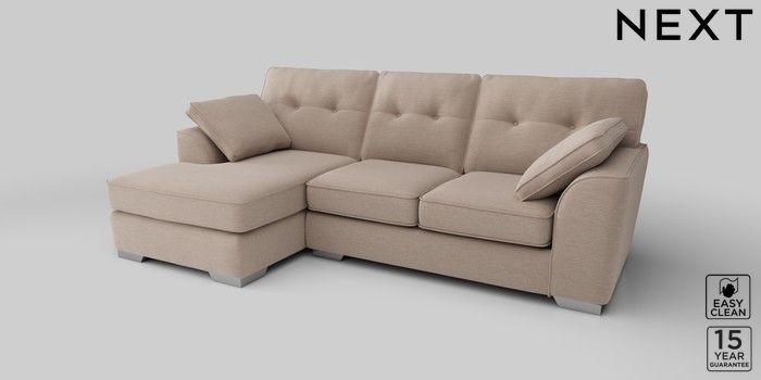 6.12.1 Buy Stamford Buttoned Back Medium Sofa Chaise - Left Hand Fine Chenille Easy Clean Mid Taupe Brown Large Square Angle - Chrome Metal from the Next UK online shop Click here to use our accessible website