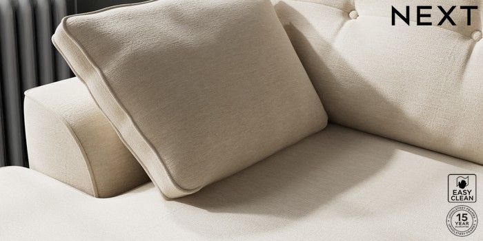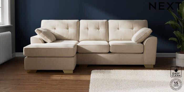 7.2.10 Buy Stamford Buttoned Back Medium Sofa Chaise - Left Hand Fine Chenille Easy Clean Oyster Large Square Angle - Brushed Brass from the Next UK online shop Click here to use our accessible website