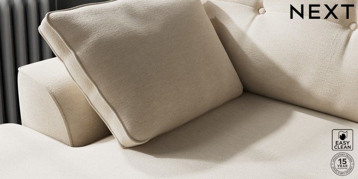 7.2.10 Buy Stamford Buttoned Back Medium Sofa Chaise - Left Hand Fine Chenille Easy Clean Oyster Large Square Angle - Chrome Metal from the Next UK online shop Click here to use our accessible website